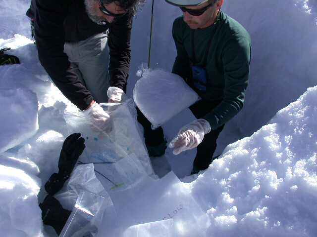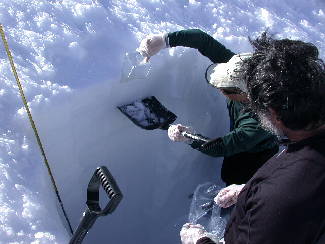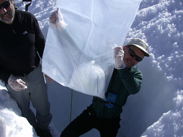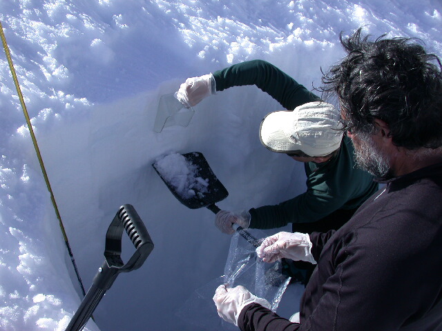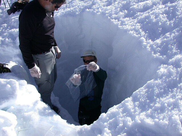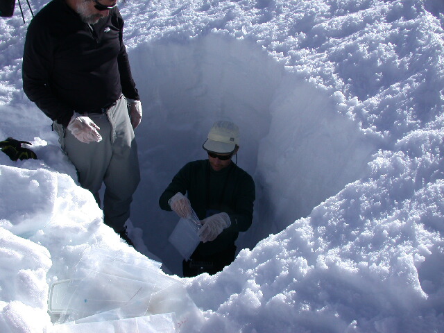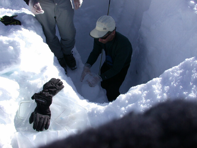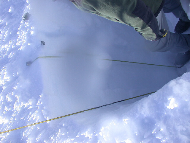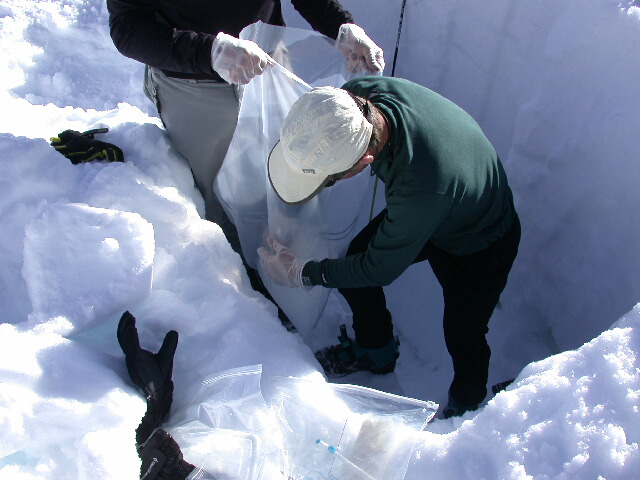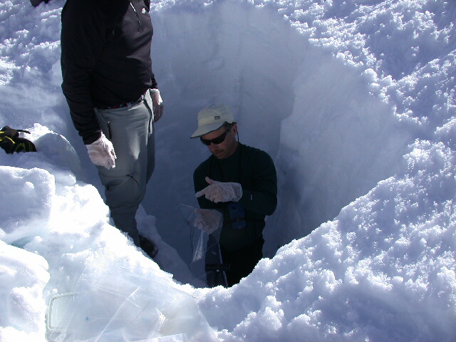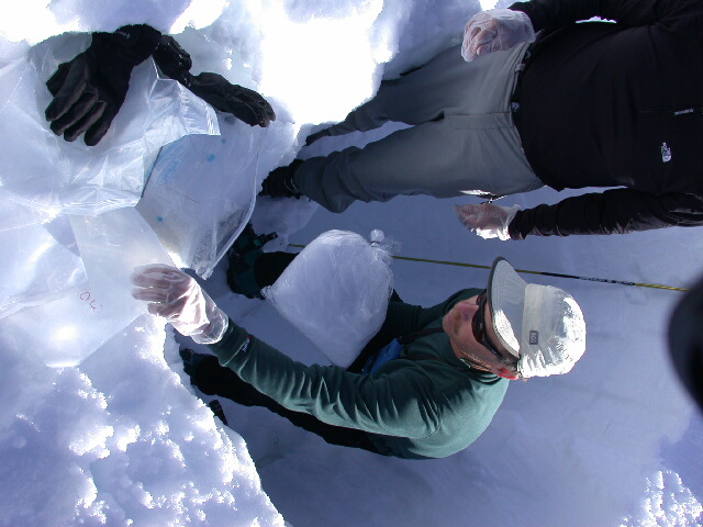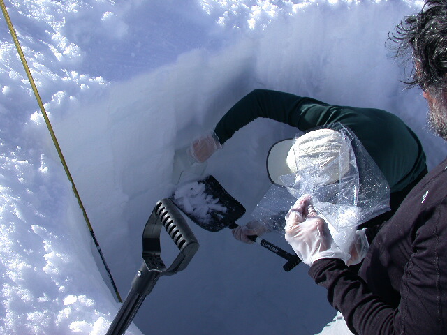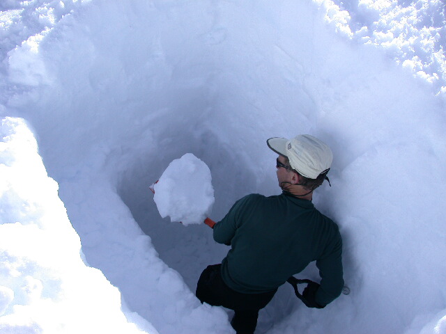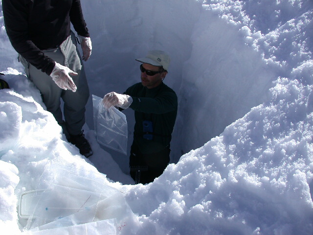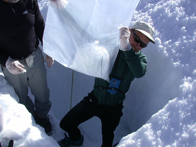 Mark Butler taking a rest while skiing down towards Dana Meadows.