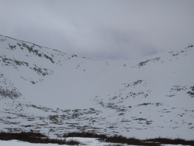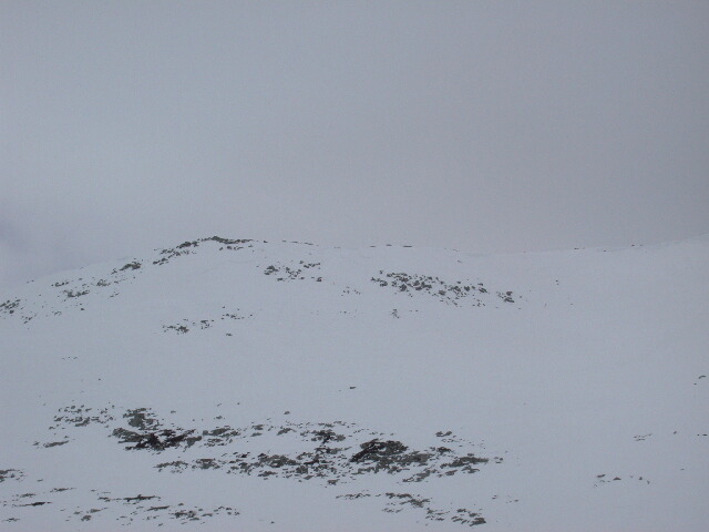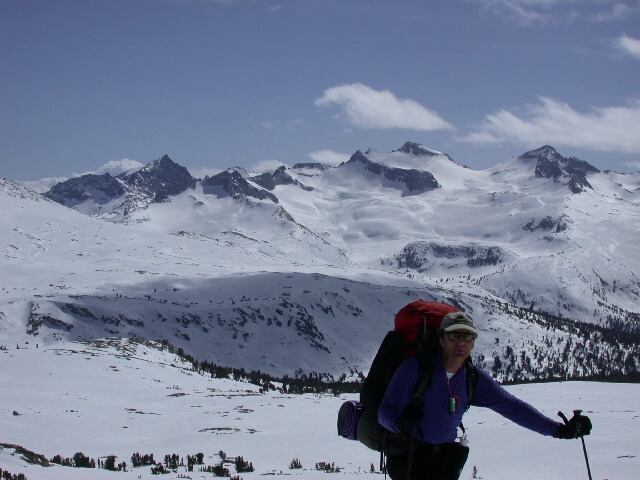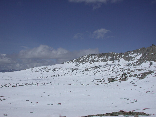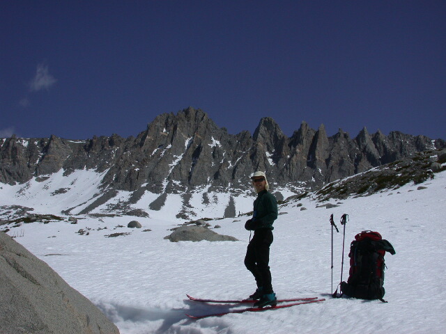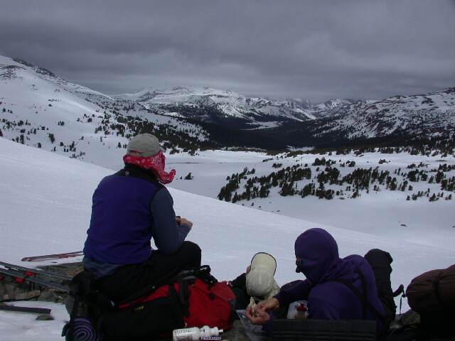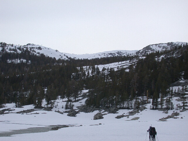 Skiing towards Helen Lake below the Kuna Crest. Campsite was just below where the left-hand side of the ridge hits the snow.