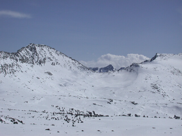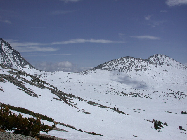 Donahue Peak on the left. Donahue Pass in the middle. Probably Mt Davis above Donahue Pass.