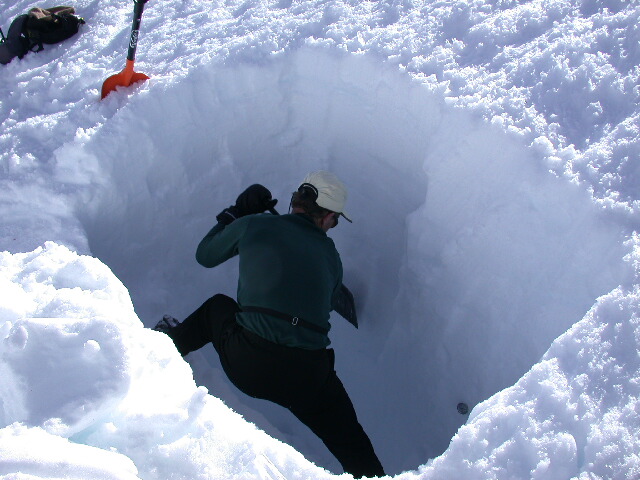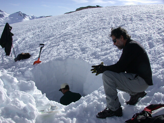 Dave Clow and I downclimbed this little col above Helen Lake. Slope angle between 40-45 degrees.