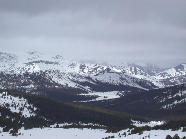 Looking south towards the Yosemite Park Boundary. Davis Peak on the left, Mt Lyell on the right.