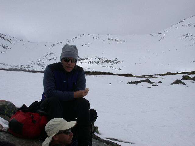 Lunch at the outlet of Helen Lake. The pass (col) above Lake Helen that allowed us to traverse the Kuna Crest.
